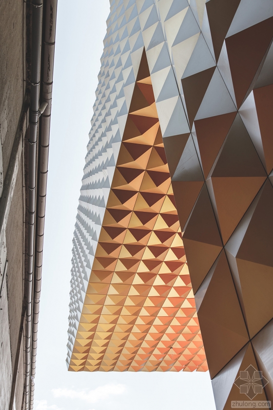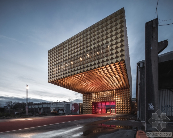 这是由COBE与MVRDV联合设计的罗斯基勒市Ragnarock摇滚博物馆,位于丹麦罗斯基勒市的一个工业仓库区里。该建筑金光闪闪,集摇滚、流行元素与青年文化于一身。COBE与MVRDV强强联合设计的这座博物馆,是建筑师于2011年赢得的ROCKmagneten大片区总体规划的一部分。该总体规划将现状的Musicon进行改造,并新增了三座新建住。除了Ragnarock摇滚博物馆,另外两座即将落成的建筑分别是罗斯基勒摇滚音乐节(RoskildeRockFestival)民谣高中以及知名的年度罗斯基勒摇滚音乐节(RoskildeRockFestival)音乐活动举办总部。