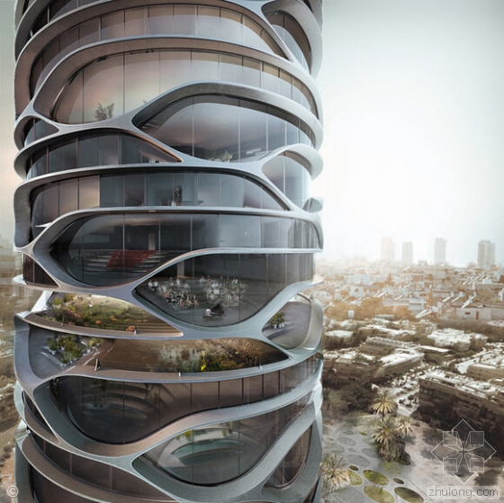 特拉维夫市圆柱形摩天大楼概念方案